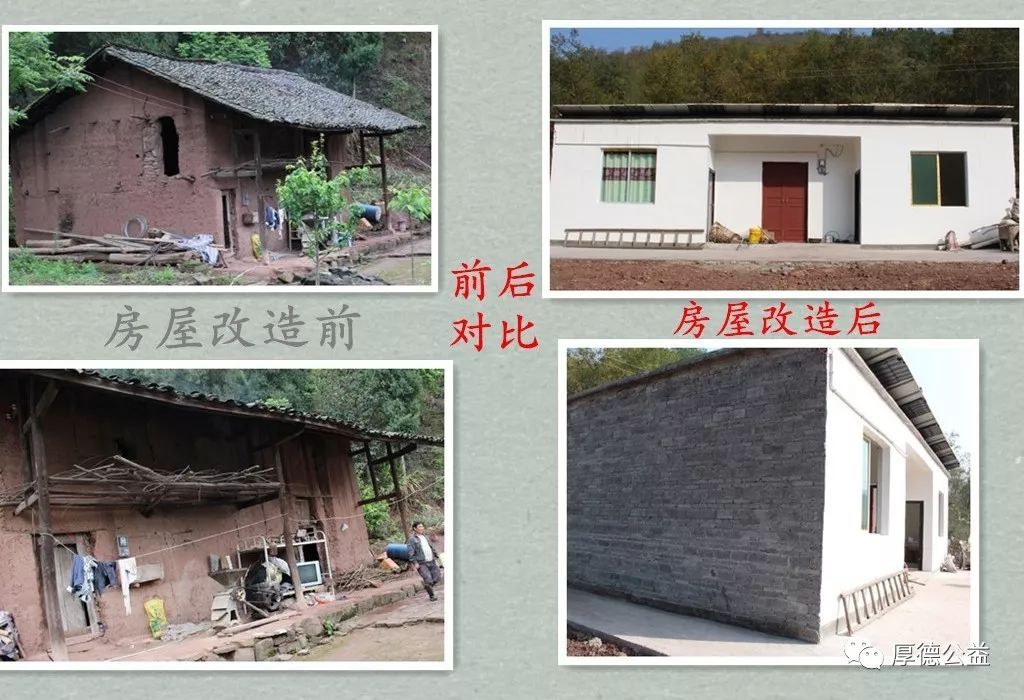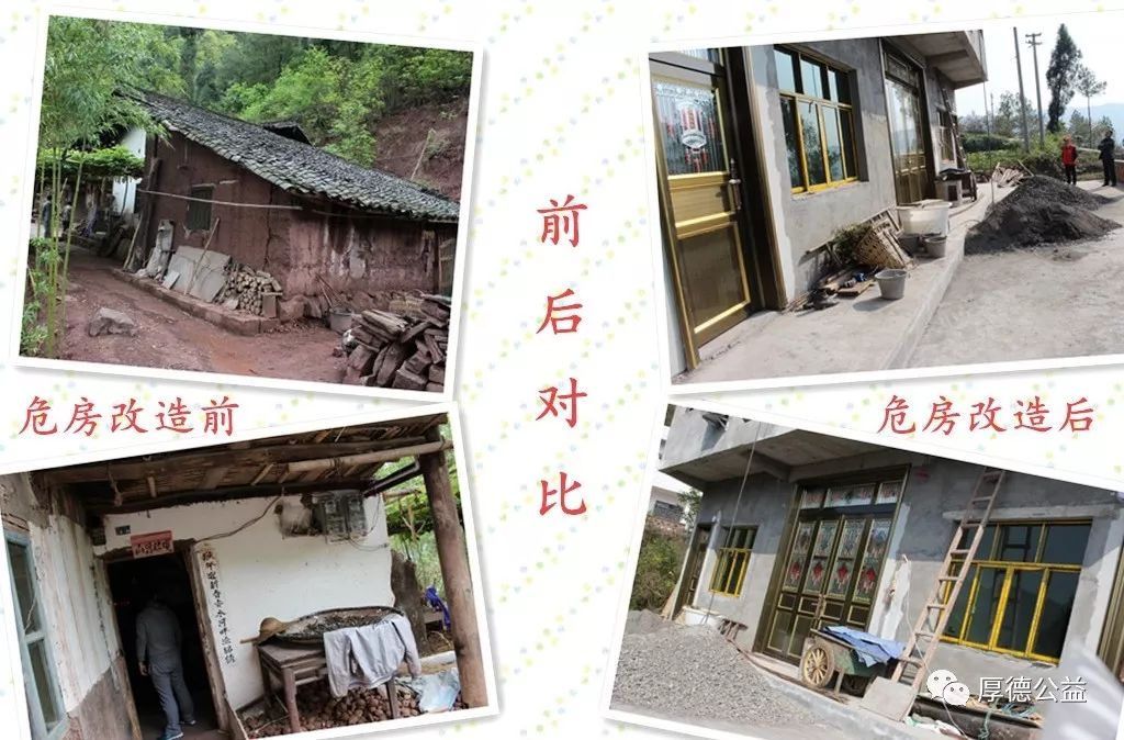 重点资助身患残疾和极度贫困家庭改造农村危房和贫困地区校舍房屋结构严重变形危及师生生命财产安全的乡村小学,与项目点乡镇危房改造机构合作,支持项目目标单位和个人改造房屋设施提高乡村小学办学环境和残疾人及极贫困家庭居住环境,推动全社会对乡村小学和残疾人及极贫困家庭人身安全关注。 部分危房与新建房屋对比照片展示 2017“大爱益家——危房改造”项目已圆满结项,善款已全部发放完毕。 援建单位:习水企业家商会,贵州省君鑫混凝土有限公司,贵州国明投资有限公司,习水县航合物流有限公司,习水县朝阳商贸有限公司,习水县华益机动车检测中心有限公司,习水县欣源建材有限公司,贵州省厚德公益基金会。