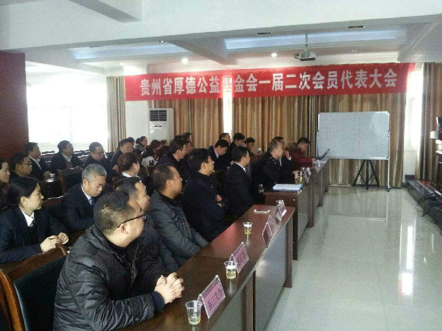 2016年1月23日贵州省厚德公益基金会一届2次会员代表大会在习水县华益机动车检测中心会议室召开。会议由基金会副秘书长张芷睿主持,听取陈友强秘书长关于2015年秘书处的工作述职报告、刘德珍监事长关于2015年监事会的工作述职报告、李彬理事长关于2015年理事会的工作述职报告,并对基金会组织架构和理事会成员做了调整。此次大会发起人单位会员代表36人,政府相关单位领导、社会爱心人士和公益合作伙伴代表15人,共51人参会。会上陈友强秘书长用“家人”一词称呼到场的全部人员,表达了基金会对所有伙伴的感谢和敬意。会上陈友强秘书长总结了2015年基金会秘书处的工作,主要从助学、助残、关爱孤老、灾区重建等方面开展项目活动,取得不错的成绩。2016年将迎接新的挑战,基金会秘书处将工作分为7大类,即公益组织培育、公益助学、公益传播、水资源保护、美丽乡村建设、关爱抗战老兵、防灾减灾方面开展公益活动,力求开展多元化和创新性项目活动,打造源于习水,扎根习水,服务习水的公益品牌。