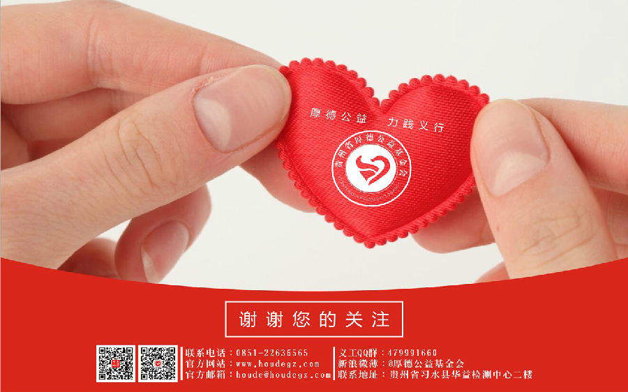 公益热线: 0851-86832269 官网邮箱: houde@houdegz.com 服务时间: 周一至周五9:00-17:00(法定节假日除外) 贵阳办公室: 贵阳市观山湖区北大资源梦想城9-A01栋37楼 习水项目办: 遵义市习水县东皇街道岷山路社区(汇泽苑)9栋1楼