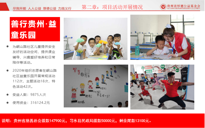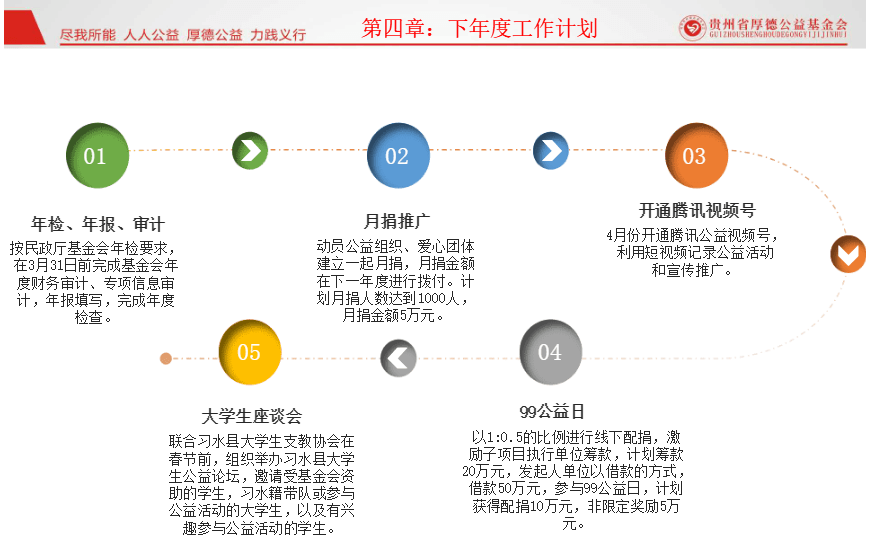 最后荣誉理事长李彬要求基金会秘书处要提升宣传的意识和能力,要加强项目管理和运营能力,利用好“99公益日”互联网筹款平台,提供配捐资金支持,凝聚慈善力量,助力乡村振兴。在慈善事业助力乡村振兴的新使命要求下将品牌项目“困境学子助学计划”持续的开展好,将“善行贵州·益童乐园”项目运营好,发挥好基金会“第三次分配”作用,更好助力乡村振兴战略实施。