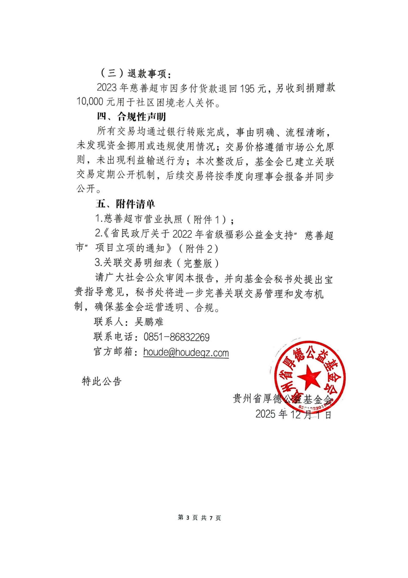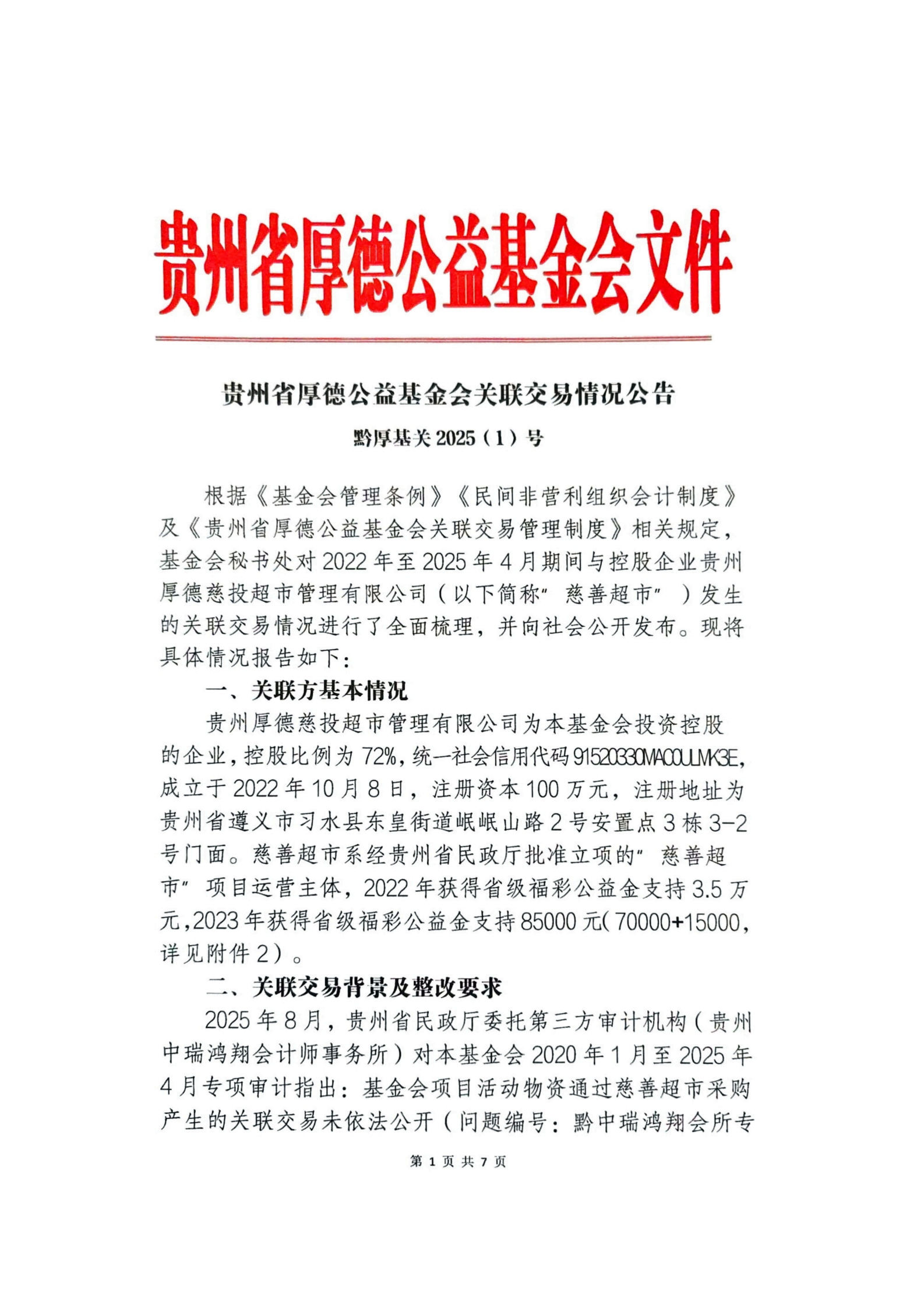贵州省厚德公益基金会关联交易情况公告黔厚基关2025(1)号