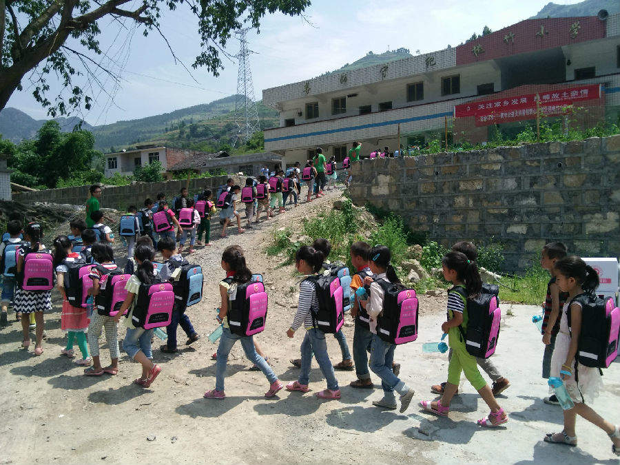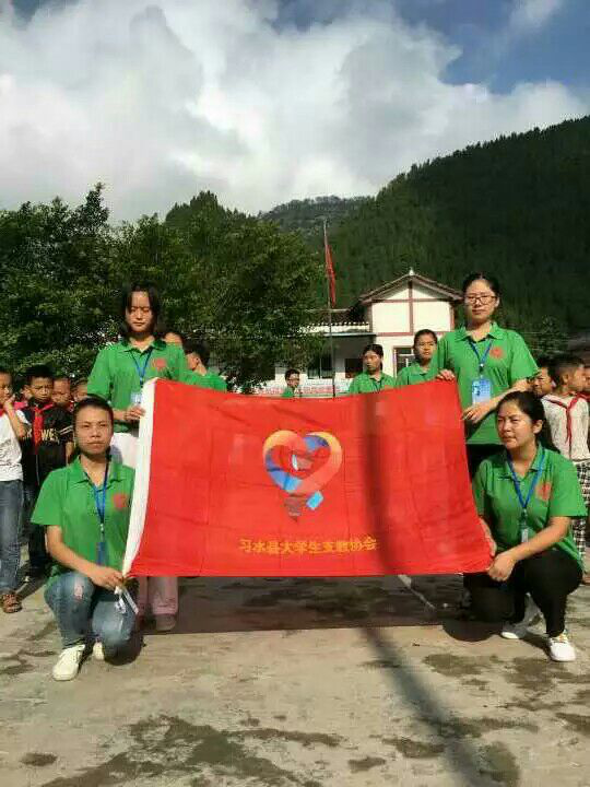 三支统一着绿衣白帽的队伍从习水县出发,分赴回龙镇阳光小学、习酒镇桃竹小学、马临区尚华村,在教员与学生都不太熟悉的情况下,面对鲜艳的会旗宣誓,支教活动正式开始