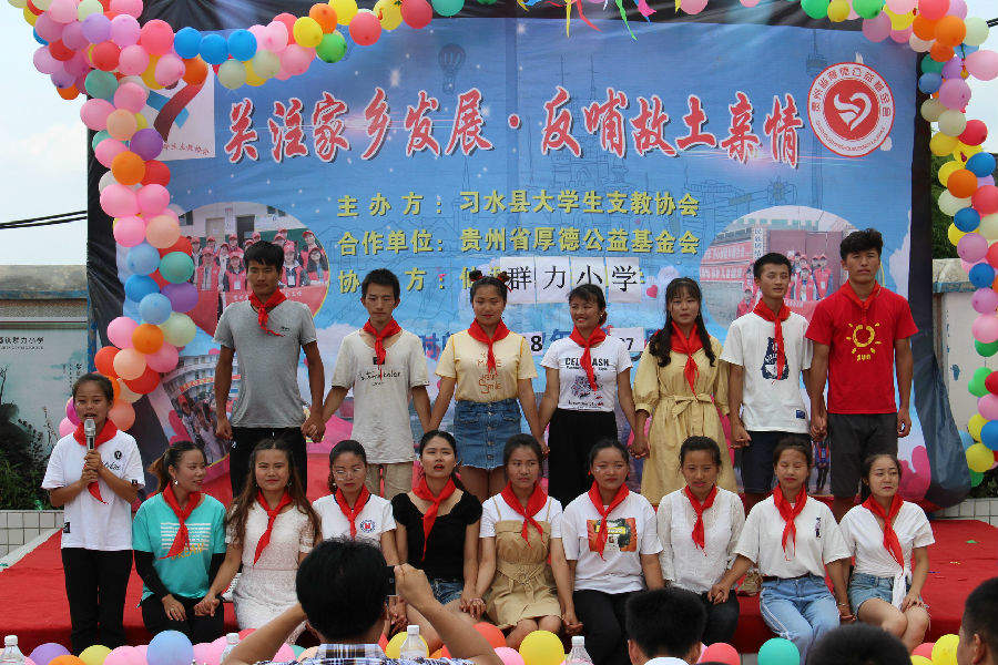 2018年8月7日早上8:30,由贵州省厚德公益基金会“青年公益”项目支持,习水县大学生支教协会中心支教队在习酒镇群力小学开展2018暑假公益支教文艺汇演活动。