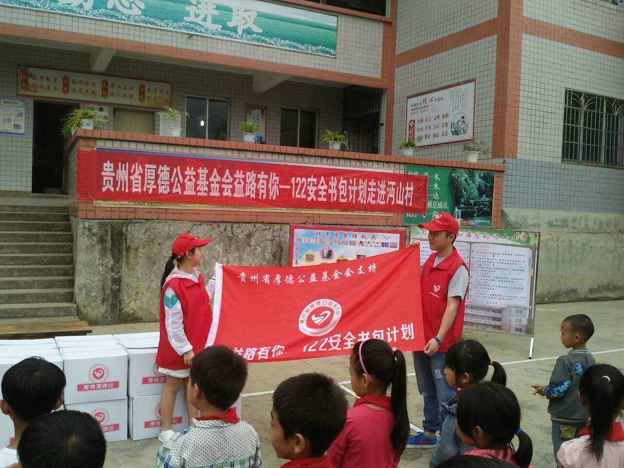 《益路有你——122安全书包计划》由贵州省厚德公益基金会发起,旨在通过资助贫困村级小学学生装有360度反光布料的安全书包,提醒交通车辆注意学生交通安全,提高全社会对乡村学生交通安全保护意识,推动社会关注贫困乡村小学生健康成长。