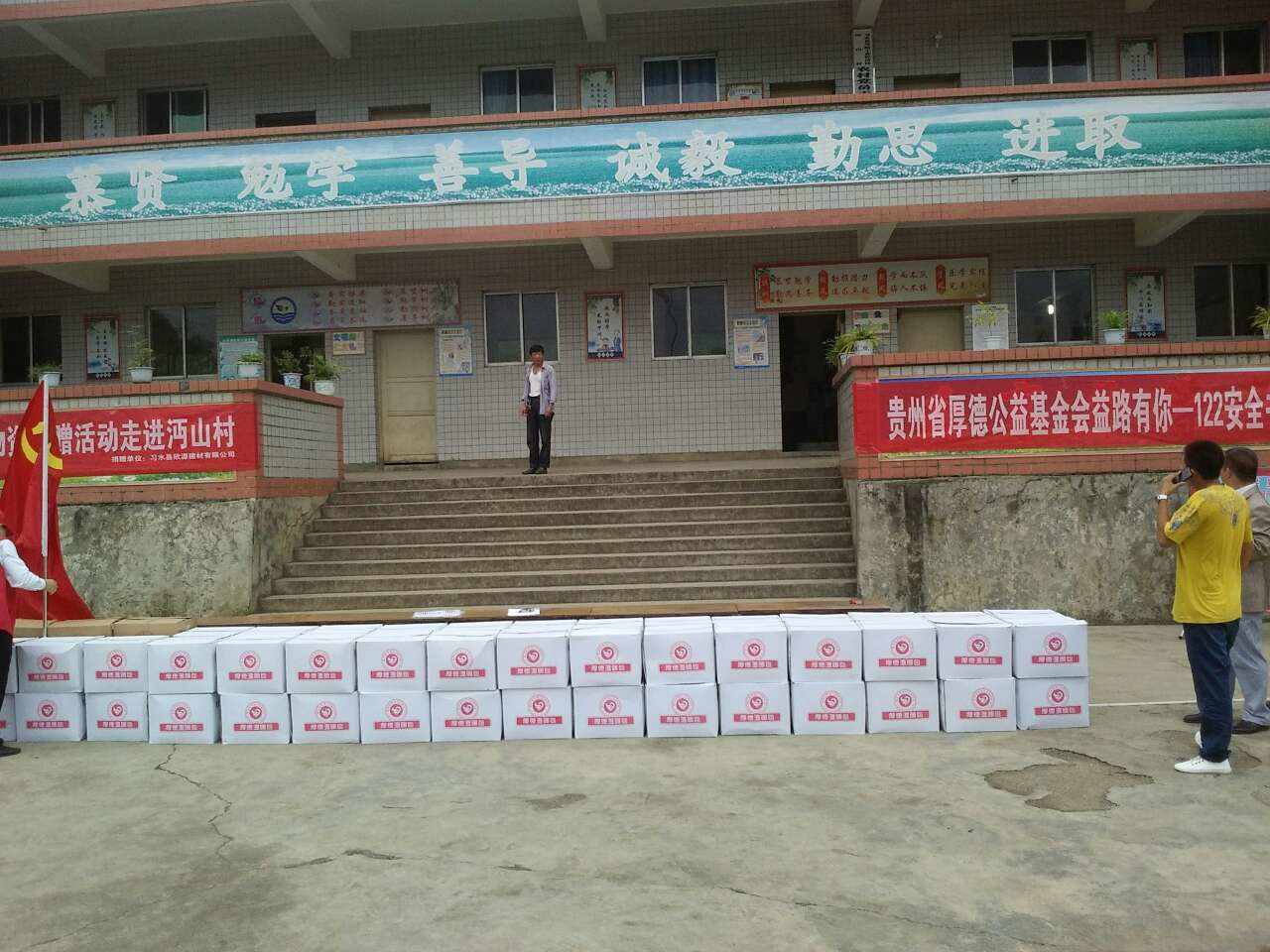 此次活动针对习水县程寨乡石门村、马临镇沔山村、回龙镇阳光村。3个村级学校进行捐赠,对每一位学生发放安全书包一个,安全书包内含学生文具套装一套,学生饮用水杯一个。共计捐赠价值122元一套的安全书包722套,共计捐赠金额8万多元。