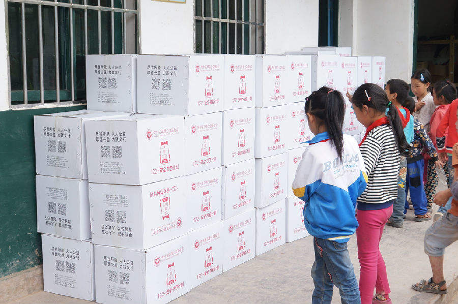 益路有你——122安全书包计划重点资助贫困村级小学学生装有360度交警服装反光布料的安全书包(书包内配备学习文具盒、儿童水杯)。在早晨,傍晚,或是有雾天气能有效地反射来自小学生周围100米范围内的车辆灯光,提醒交通车辆注意学生交通安全,提高全社会对乡村小学生交通安全保护意识,推动社会关注贫困乡村小学生健康成长。