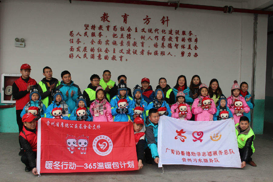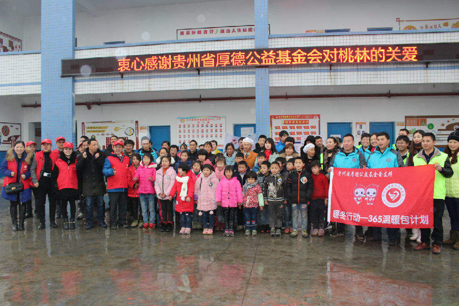2018年2月10日,贵州省厚德公益基金会携手习水县善德助学促进会在永安镇、桃林镇开展了“暖冬行动”365温暖包捐赠活动,这次活动共捐赠困境儿童温暖包60个,价值共计21900元。